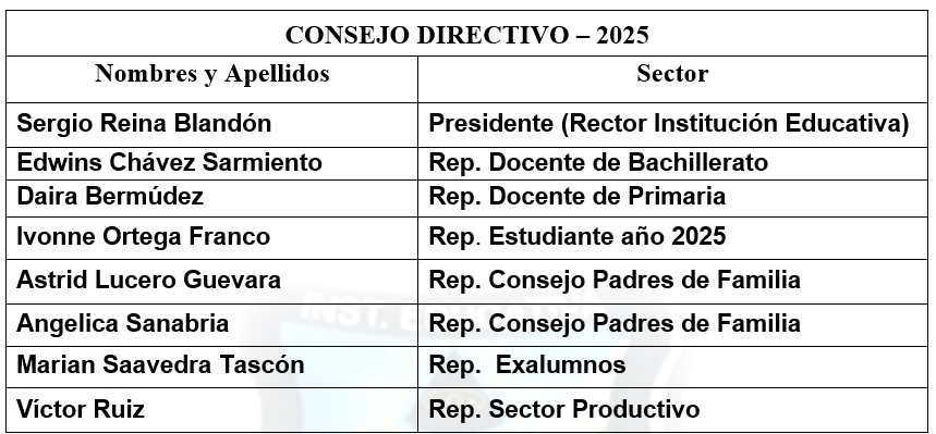 - Un representante de los estudiantes que debe estar cursando el último grado de educación que ofrezca la institución.
